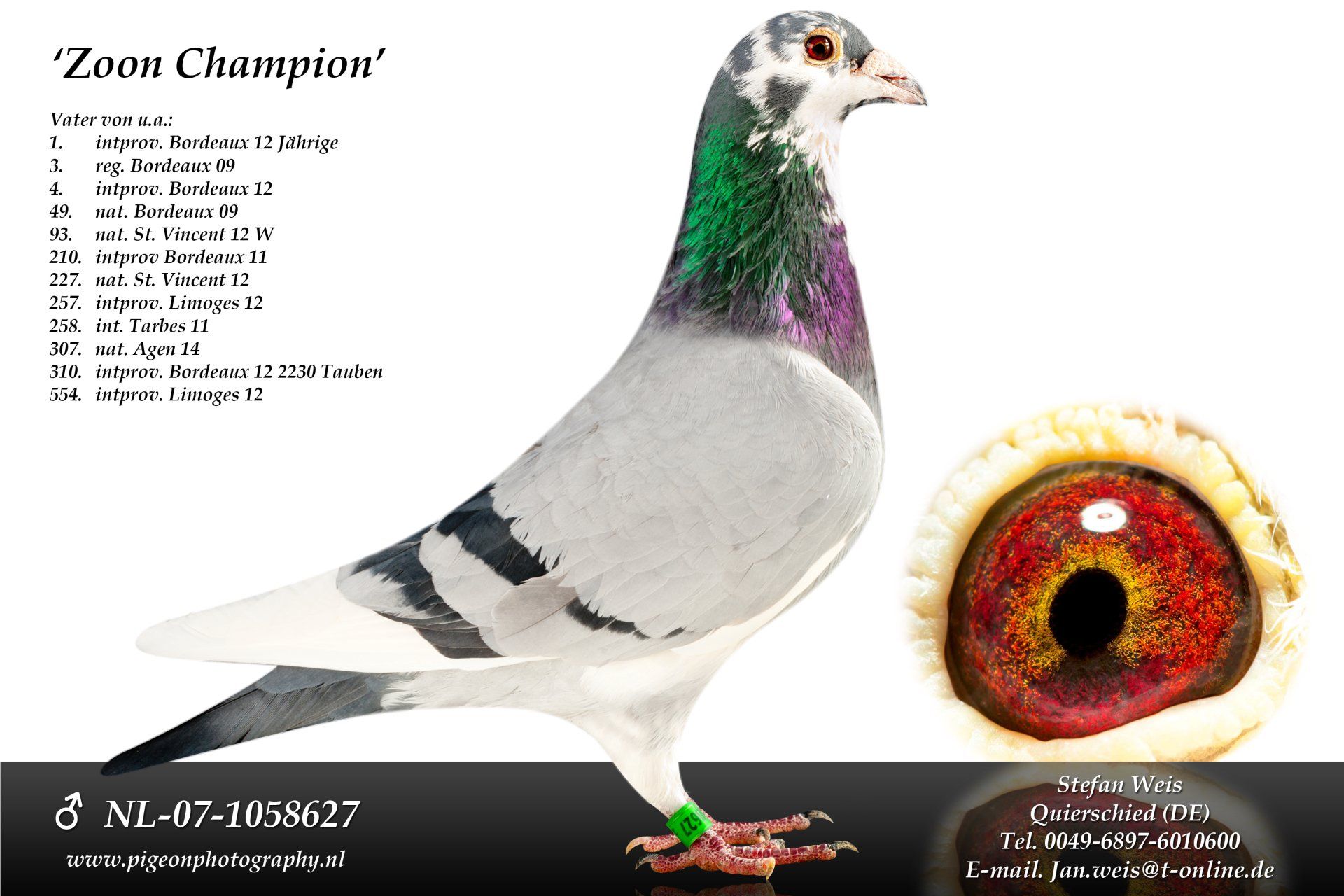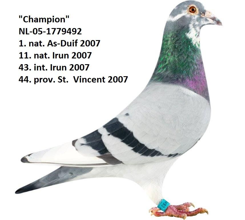 Der "Champion" wurde gezüchtet von Fons von Ophuizen aus Landgraaf in den Niederlande. Dort wurde er auch As Taube von Holland. Bereits früh erkannte Fons, dass der "9492" eine absolute Ausnahmetaube ist und fing schon früh an aus ihm zu ziehen. Die Nachzucht in erster und zweiter Generation konnten sofort überzeugen. Nach der Totalversteigerung nach dem Tod von Fons von Ophuizen wurde der Champion für viel Geld an Hendriks-Meijberg verkauft. Auch hier zeigte er seine Zuchtklasse. Nach der Totalversteigerung von Hendriks-Meijberg zog der "Champion" mit seinen zwei Töchtern zu seinen 4 Söhnen nach Quierschied.